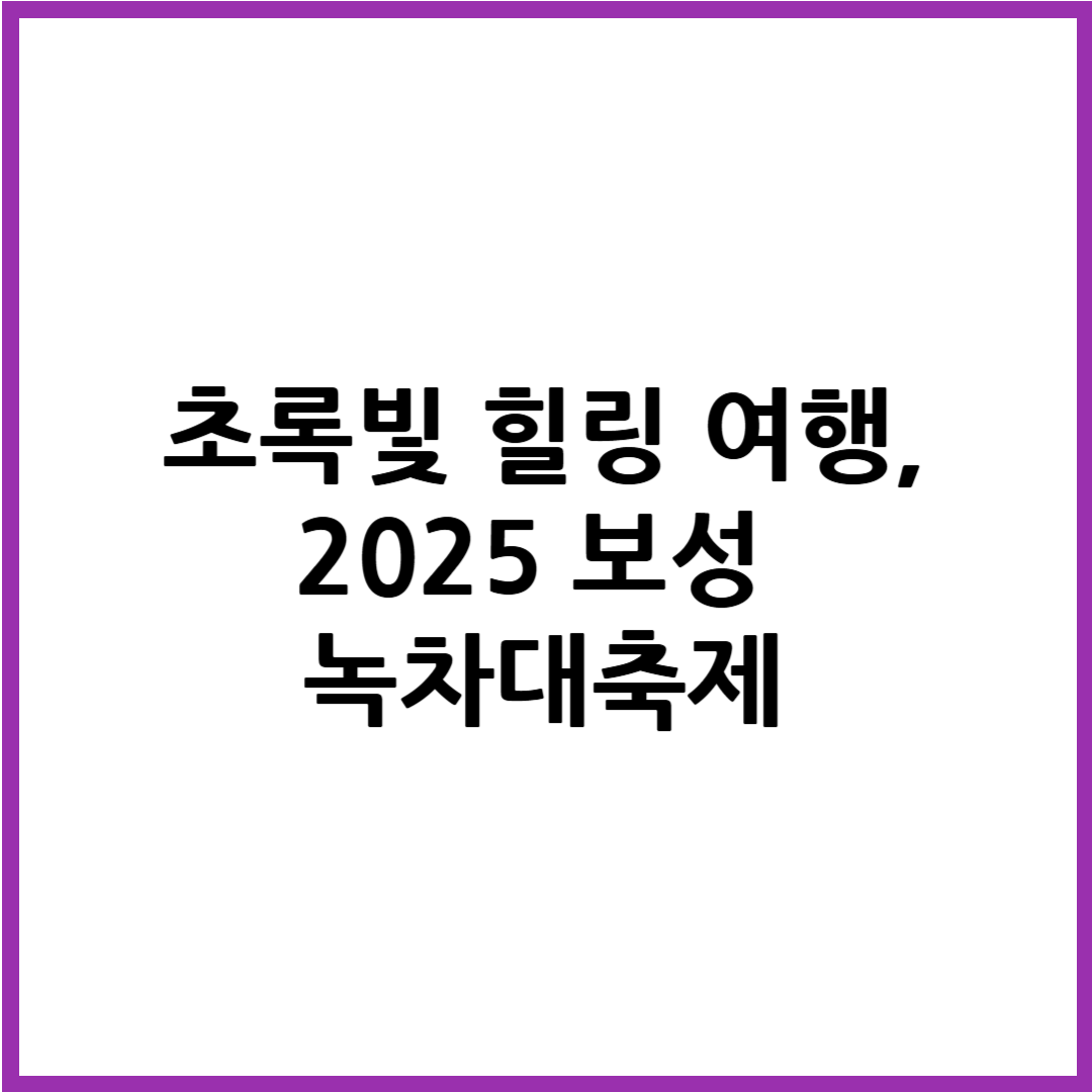 📅 보성 녹차대축제 2025 — 일정 및 장소
