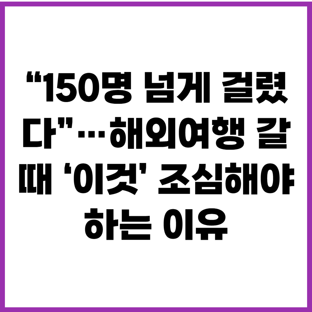 해외여행을 떠나기 전, 떠나고 나서 가장 걱정되는 일 중 하나는 건강 문제입니다. 그중에서도 최근 해외여행객들 사이에서 감염병이나 질병에 걸리는 일이 증가하고 있어 더욱 주의가 필요합니다. 특히, 150명 이상이 걸렸다고 보도된 이 질병은 바로 해외에서의 감염 위험을 상징적으로 보여줍니다. 이런 문제를 예방하고 안전하게 여행을 즐기기 위해서는 여행 전 준비와 예방이 무엇보다 중요합니다. 그럼 해외여행 중에 우리가 주의해야 할 건강 문제와 그 예방책에 대해 자세히 알아보겠습니다.