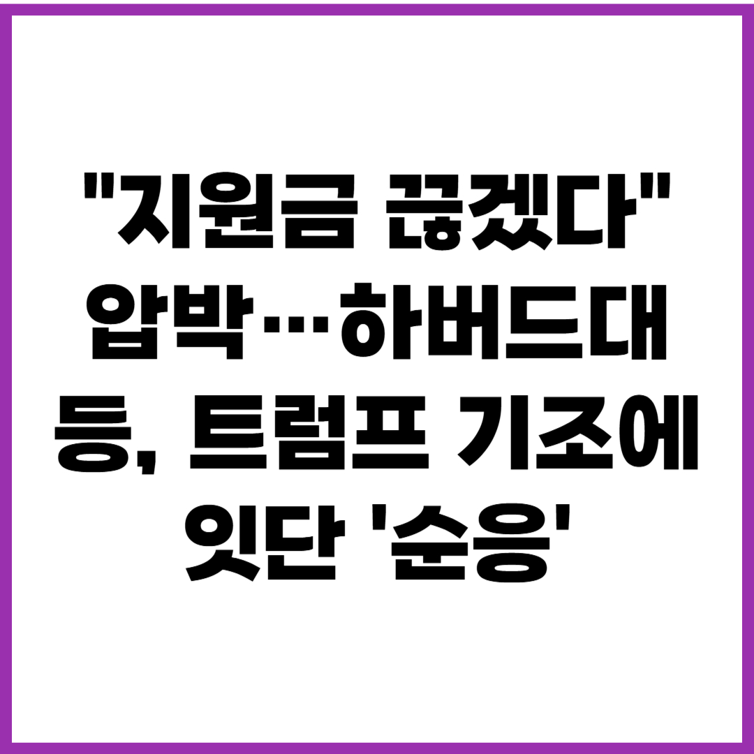 하버드대를 비롯한 미국의 명문 대학들이 최근 트럼프 전 대통령의 정책에 대한 압박과 순응을 보이고 있습니다. 그중에서도 연방 정부 지원금과 관련된 문제는 많은 주목을 받고 있습니다. 트럼프 정부 하에서 여러 대학들이 정부 지원금을 받는 대신, 특정 정치적 기조나 정책에 순응해야 한다는 압박을 받아왔다는 사실이 드러났습니다. 이는 학문적 자유와 대학의 독립성을 위협할 수 있는 중요한 문제로, 많은 이들이 우려하고 있습니다.